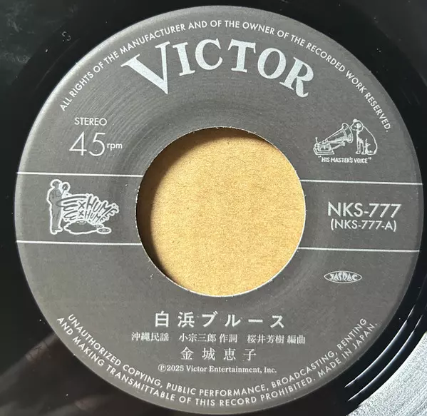 金城恵子: 白浜ブルース / ボサノバ・ジントーヨー verze na vinylu SP v 45 RPM edici. Toto konkrétní vydání vyšlo v Japonsku ve vydavatelství Victor ve spolupráci s HMV Record Shop dne 29. srpna 2025. Album lze řadit do žánru Folk, World, & Country.