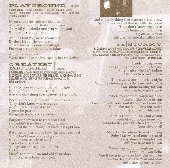 Acoustic Guitar Neil Osborne | Arranged By [Strings], Conductor [Strings] Finn Manniche | Bass Brad Merritt | Shaker, Bongos Matt Johnson (8) | Vocals Camille Henderson, Neil Osborne, Phil Comparelli