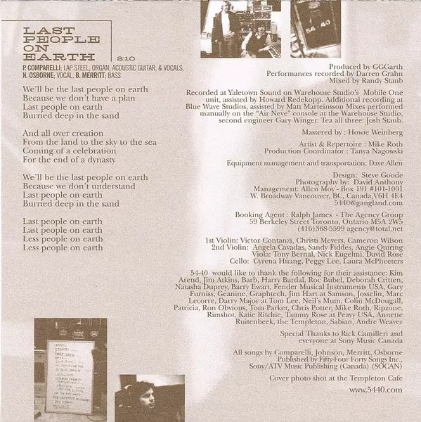 Bass Brad Merritt | Lap Steel Guitar, Organ, Acoustic Guitar Phil Comparelli | Vocals Neil Osborne, Phil Comparelli