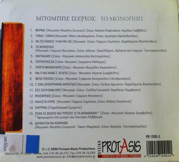 Μπάμπης Τσέρτος: Το Μονοπάτι verze na CD v standardní edici. Toto konkrétní vydání vyšlo v Řecku ve vydavatelství Protasis dne 27. srpna 2021. Album lze řadit do žánru Folk, World, & Country.