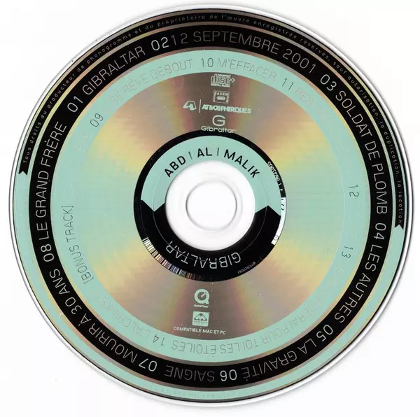 Abd Al Malik: Gibraltar verze na CD v standardní edici. Toto konkrétní vydání vyšlo v Francii ve vydavatelství Atmosphériques dne 28. listopadu 2006. Album zasahuje do žánrů Jazz, Non-Music, Hip Hop a Mluvené slovo.