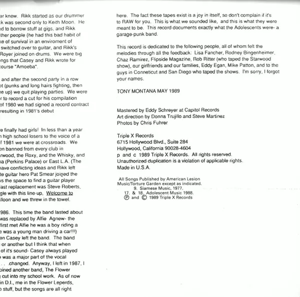| Vydavatelství | Triple X Records |