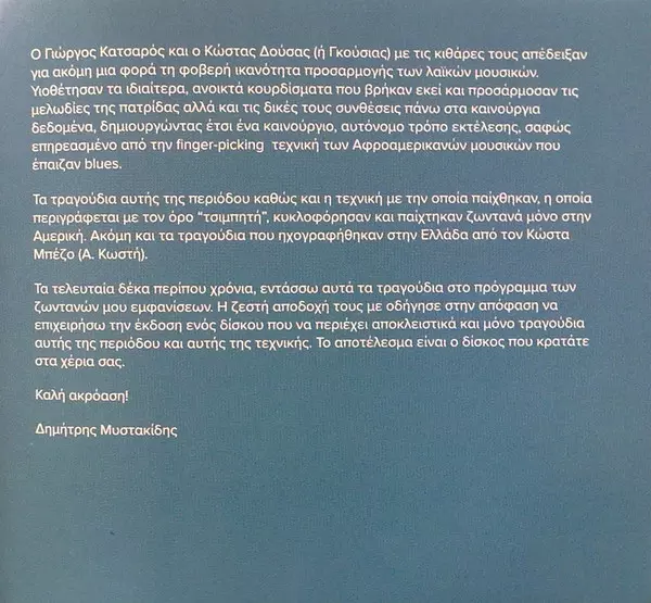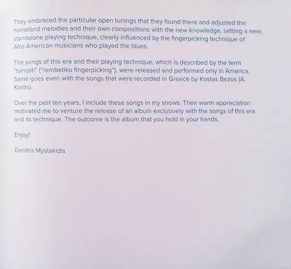 Δημήτρης Μυστακίδης: Amerika verze na CD v standardní edici. Toto konkrétní vydání vyšlo v Řecku ve vydavatelství Fishbowl dne 20. dubna 2017. Album zasahuje do žánrů Folk, World, & Country a Rebetiko.