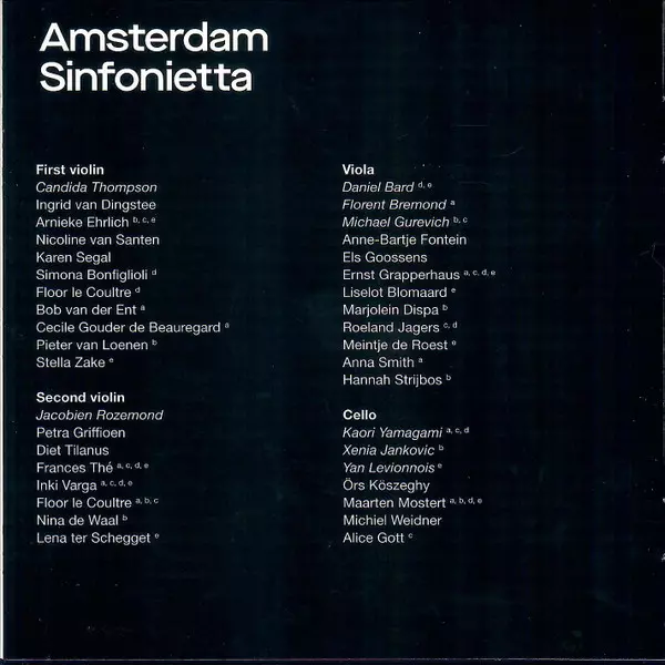 | Interpret | Amsterdam Sinfonietta | Candida Thompson |