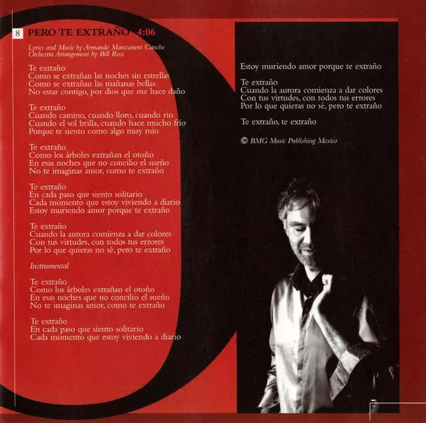 | 8 | Andrea Bocelli: Pero Te Extraño | 4:06 min | |