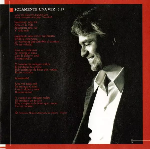 | 6 | Andrea Bocelli: Solamente Una Vez | 3:29 min | |