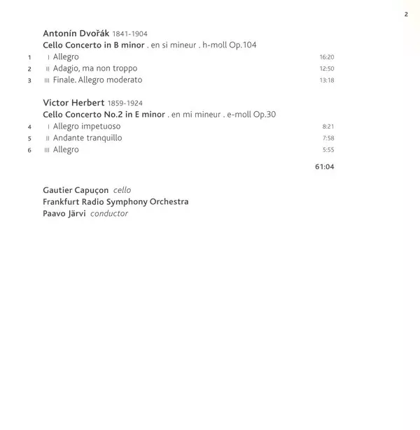 | Interpret | Antonín Dvořák | Paavo Järvi | hr-Sinfonieorchester | Gautier Capuçon | Victor Herbert |