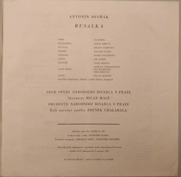 | Titul | Antonín Dvořák – Rusalka, Op. 114 |