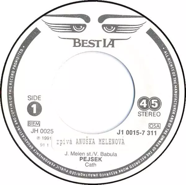 Anushka: Pejsek / V Létě verze na vinylu SP v 45 RPM edici. Toto konkrétní vydání vyšlo v Československu ve vydavatelství Help! (4) ve spolupráci s Best IA roku 1991. Album zasahuje do žánrů Pop a Dětské.