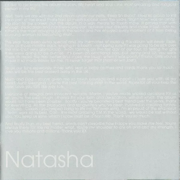 Atomic Kitten: Feels So Good verze na CD v standardní edici. Toto konkrétní vydání vyšlo v Evropě ve vydavatelství Innocent ve spolupráci s Virgin roku 2002. Album zasahuje do žánrů Pop, Elektronická hudba, Balada, Dance-pop, Disco a Europop.