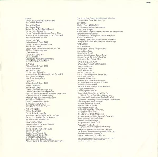 Backing Vocals Barry Gibb | Baritone Saxophone Whit Sidener | Bass Harold Cowart | Drums Steve Gadd | Grand Piano [Elephant Grand] George Bitzer | Guitar George Terry, Lee Ritenour | Shaker, Tambourine Joe Lala | Synthesizer Albhy Galuten | Tenor Saxophone Dan Bonsanti, Neal Bonsanti | Trombone, Trombone [Half Speed Bass] Peter Graves | Trumpet Brett Murphy, Ken Faulk | Written-By Barry Gibb, Robin Gibb