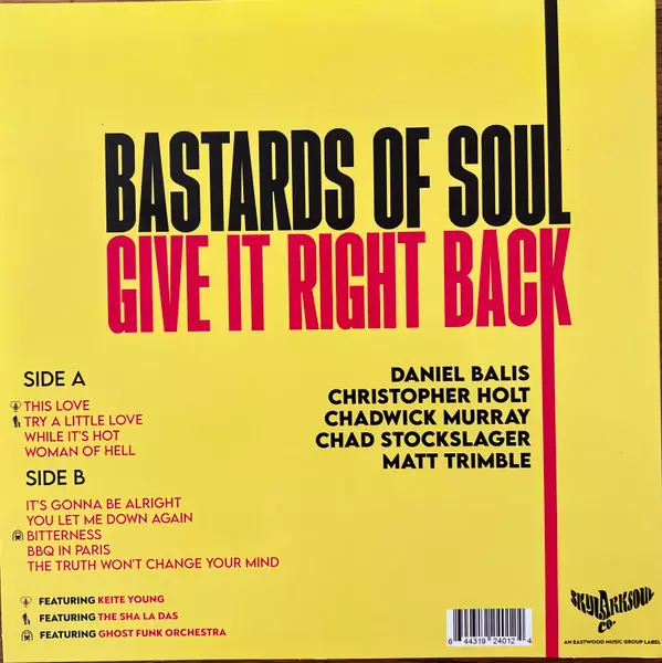 Bastards Of Soul: Give It Right Back verze na vinylu LP v standardní edici. Toto konkrétní vydání vyšlo v USA a Kanada ve vydavatelství Skylark Soul Co. ve spolupráci s Eastwood Music Group dne 17. listopadu 2023. Album zasahuje do žánrů Funk / Soul a Soul.