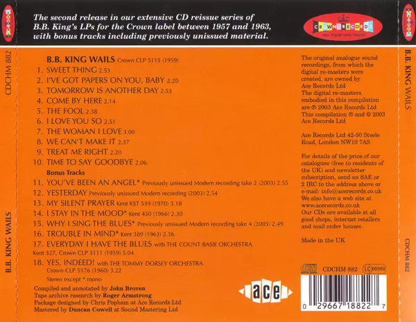 | Upřesnění | Remastered CD — Ace / Crown (UK) |