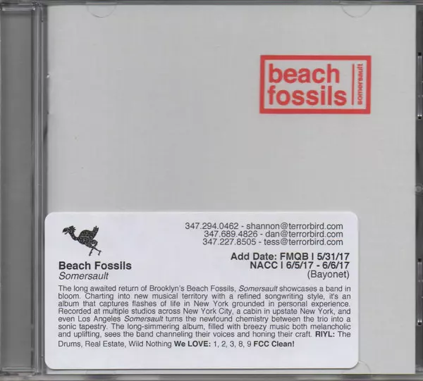 Beach Fossils: Somersault verze na CD v standardní edici. Toto konkrétní vydání vyšlo v USA ve vydavatelství Bayonet Records dne 2. června 2017. Album zasahuje do žánrů Rock, Pop, Indie Rock a Indie Pop.