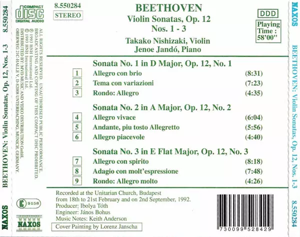 | Titul | Violin Sonatas, Op. 12 Nos. 1 - 3, Violinsonaten . Sonates pour violon |