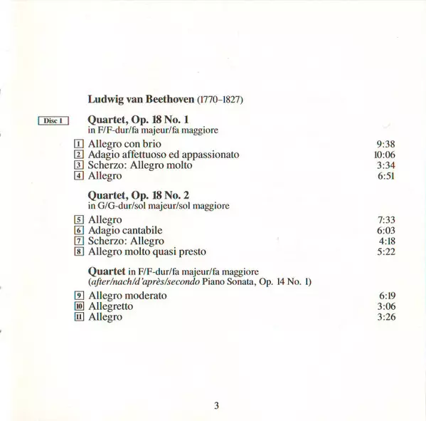 | Quartet, Op. 18 No. 3 In D Major | 25:06 min | |
