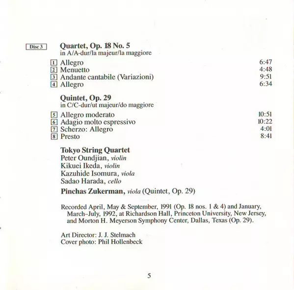 | Interpret | Ludwig van Beethoven | Pinchas Zukerman | Tokyo String Quartet |