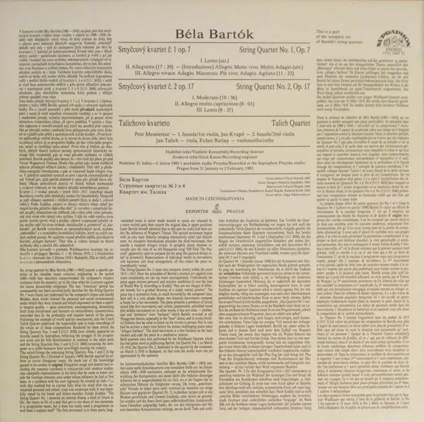 | Interpret | Béla Bartók | Talich Quartet |