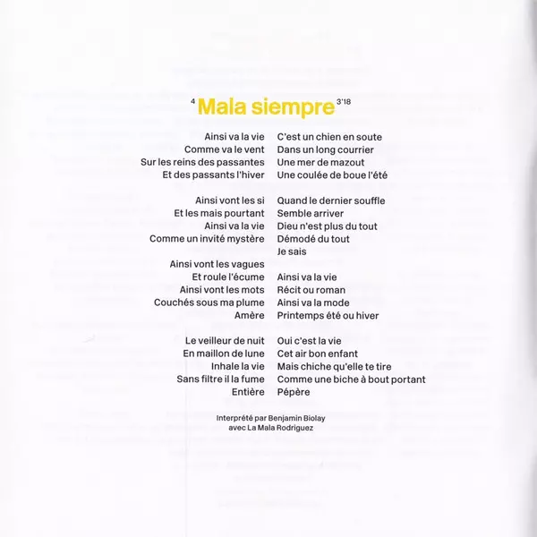 | 4 | Benjamin Biolay, Mala Rodríguez: Mala Siempre | 3:18 min | |