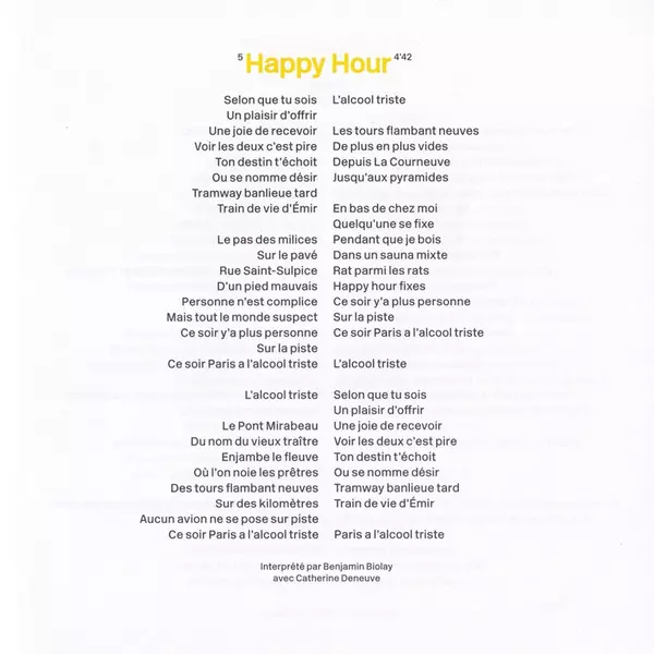 | 5 | Benjamin Biolay, Catherine Deneuve: Happy Hour | 4:42 min | |