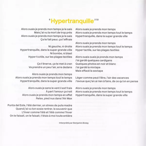 | 8 | Benjamin Biolay: Hypertranquille | 3:32 min | |
