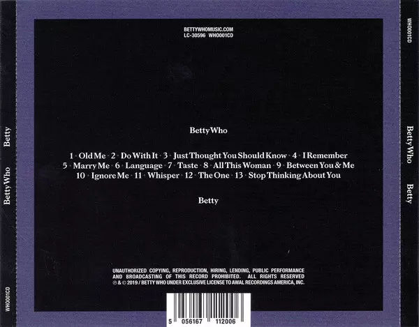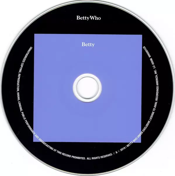 Betty Who: Betty verze na CD v standardní edici. Toto konkrétní vydání vyšlo v USA ve vydavatelství Awal dne 15. února 2019. Album lze řadit do žánru Pop.