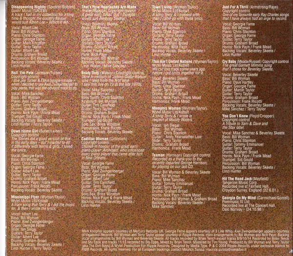 Backing Vocals Beverley Skeete, Linzi Hunter | Bass Bill Wyman | Drums Graham Broad | Guitar, Backing Vocals Terry Taylor (3) | Organ Georgie Fame | Piano Axel Zwingenberger | Slide Guitar Ian Siegal | Vocals, Guitar Albert Lee | Written-By Bill Wyman, Terry Taylor (3)