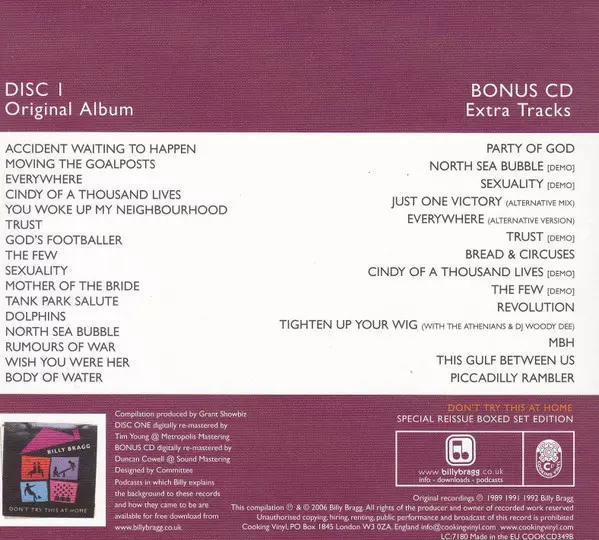 Billy Bragg: Don't Try This At Home verze na 2CD v remasterované edici. Toto konkrétní vydání vyšlo v Velké Británii ve vydavatelství Cooking Vinyl dne 30. července 2013. Album zasahuje do žánrů Rock a Indie Rock.