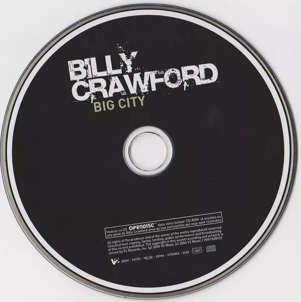 Billy Crawford: Big City verze na CD v standardní edici. Toto konkrétní vydání vyšlo v Francii ve vydavatelství V2 dne 1. července 2008. Album zasahuje do žánrů Pop, Funk / Soul, Contemporary R&B a Europop.
