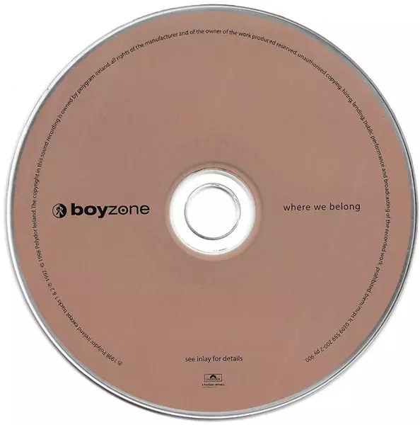 Boyzone: Where We Belong verze na CD v standardní edici. Toto konkrétní vydání vyšlo v Velké Británii ve vydavatelství Polydor roku 1998. Album zasahuje do žánrů Pop, Balada a Europop.