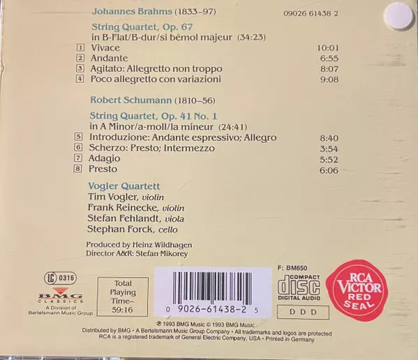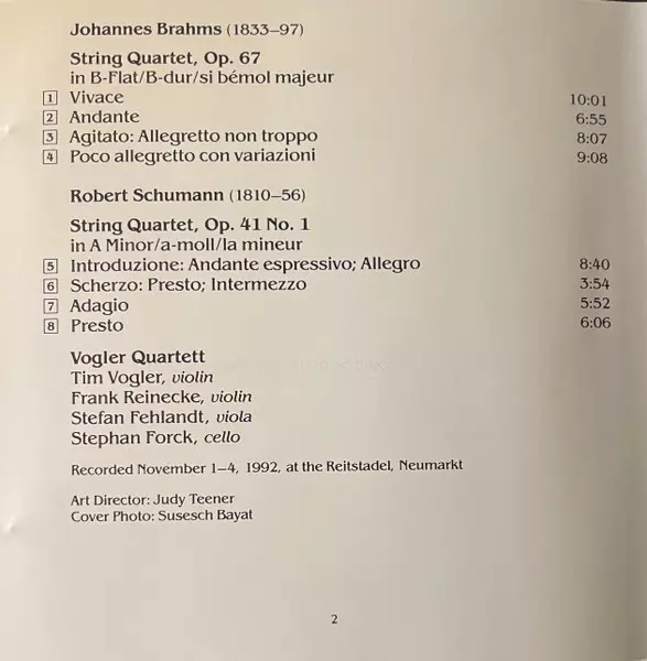 | Interpret | Johannes Brahms | Robert Schumann | Vogler Quartett |