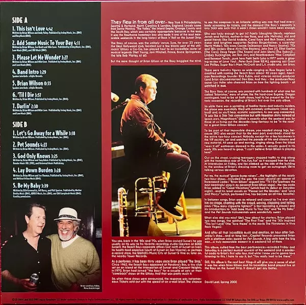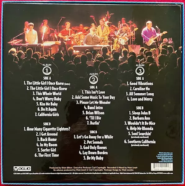 Brian Wilson: Live At The Roxy! Theatre CLR | DLX verze na vinylu 3LP/Box Set v kolorované deluxe edici. Toto konkrétní vydání vyšlo v USA ve vydavatelství Oglio Records dne 7. listopadu 2025. Album zasahuje do žánrů Pop Rock, Psychedelický pop a Sunshine Pop.