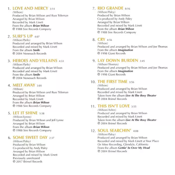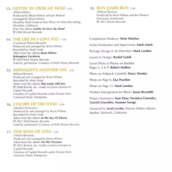 Producer, Arranged By Brian Wilson | Recorded By, Mixed By Mark Linett | Written-By Brian Wilson