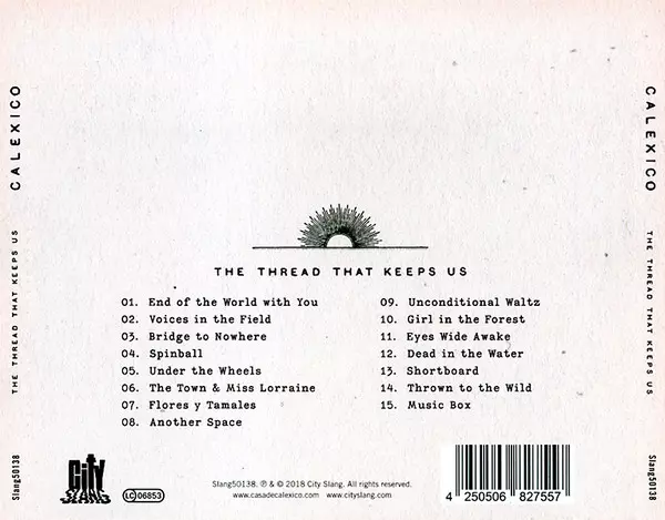 Zpět ke kořenům Dva roky po vydání posledního alba "Edge Of The Sun", které se umístilo na šestém místě německé hitparády, se Calexico vrací do studia s novým materiálem. "The Thread That Keeps Us" je devátým LPm albem septetu kolem Joeyho Burnse a Johna Convertina. Tentokrát našla kapela z Arizony ideální místo pro nahrávání v severní Kaliforni...