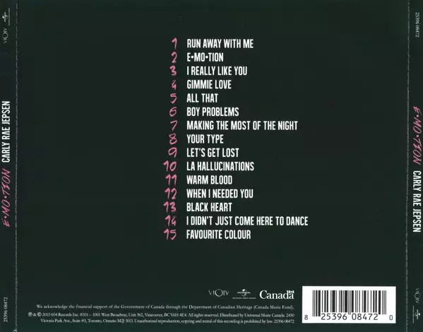 Carly Rae Jepsen Třetí studiové album E-MO-TION vyšlo v roce 2015. Album se setkalo s příznivým ohlasem kritiků, kteří chválili Jepsenovo autorství a pěvecké výkony. Z alba vzešly hity "I Really Like You", "Run Away with Me" a "Call Me Maybe".