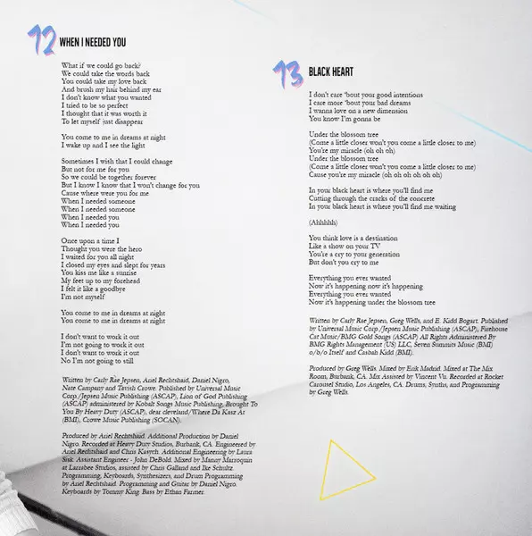 Producer Mattman & Robin, Shellback (2) | Songwriter Carly Rae Jepsen, Jonnali Parmenius, Mattias Larsson (7), Oscar Holter, Robin Fredriksson, Shellback (2)