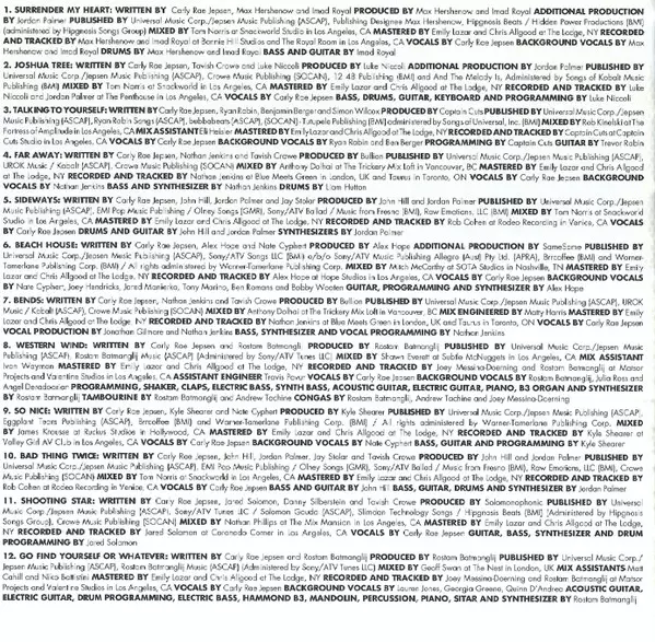Guitar, Bass, Synthesizer, Drum Programming Jared Solomon | Mixed By Nathan Phillips (10) | Producer Solomonophonic | Recorded By, Tracking By Jared Solomon | Written-By Carly Rae Jepsen, Danny Silberstein, Jared Solomon, Tavish Crowe