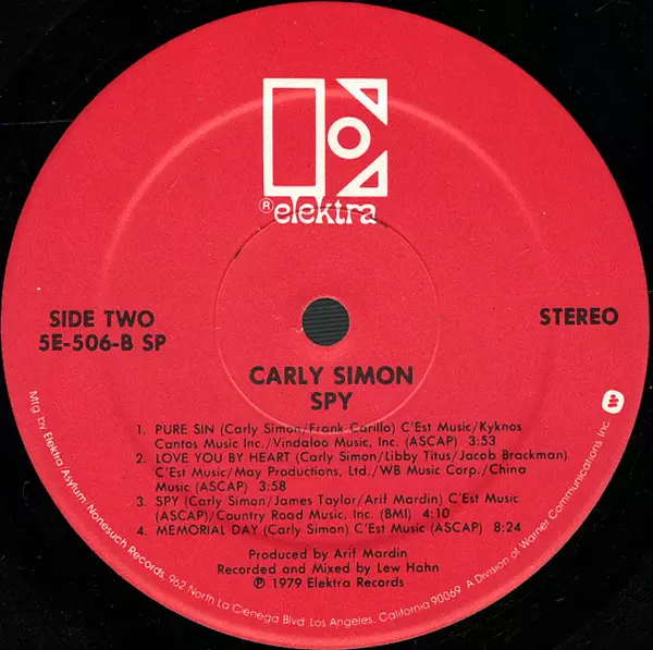 Carly Simon: Spy verze na vinylu LP v standardní edici. Toto konkrétní vydání vyšlo v USA ve vydavatelství Elektra roku 1979. Album zasahuje do žánrů Rock, Pop a Pop Rock. Sp Specialty Pressing Gatefold Vinyl.