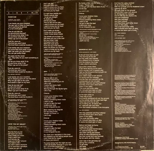 Acoustic Guitar, Electric Guitar David Spinozza | Alto Saxophone, Soloist David Sanborn | Backing Vocals Carly Simon, James Taylor (2), Ullanda McCullough | Bass Will Lee | Drums Rick Marotta, Steve Gadd | Electric Piano Richard Tee | Piano [Acoustic] Warren Bernhardt | Synthesizer [Polymoog] Ken Bichel | Words By, Music By Carly Simon
