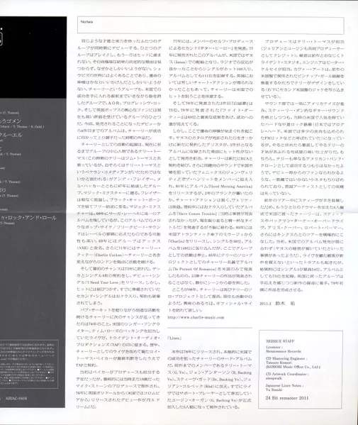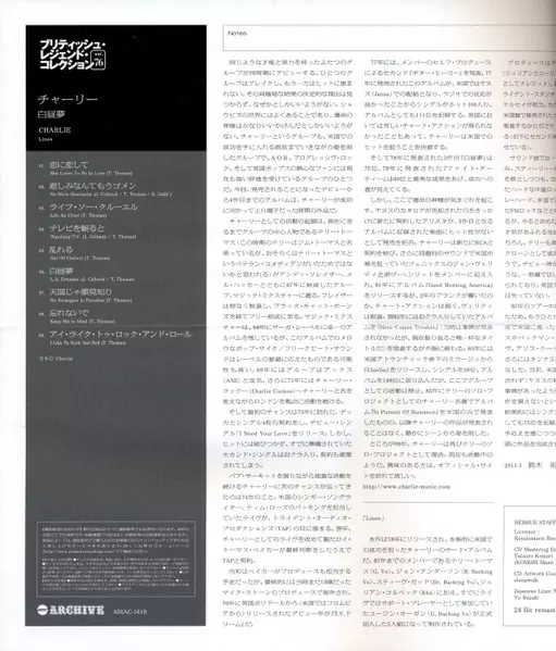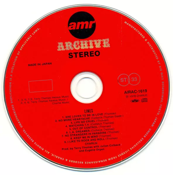 Charlie: Lines verze na CD v remasterované edici. Toto konkrétní vydání vyšlo v Japonsku ve vydavatelství Air Mail Archive dne 26. dubna 2011. Album zasahuje do žánrů Rock a Pop Rock. Paper Sleeve.