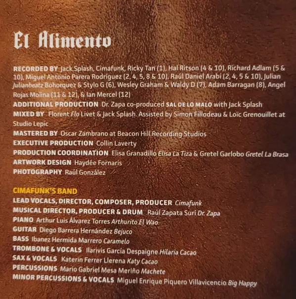 Cimafunk: El Alimento verze na CD v standardní edici. Toto konkrétní vydání vyšlo v USA ve vydavatelství Terapia Productions ve spolupráci s Mono Mundo Recordings dne 8. prosince 2023. Album lze řadit do žánru Funk / Soul.