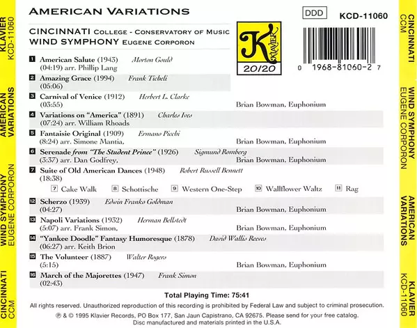 | Interpret | Eugene Corporon | Cincinnati Wind Symphony | Brian Bowman |