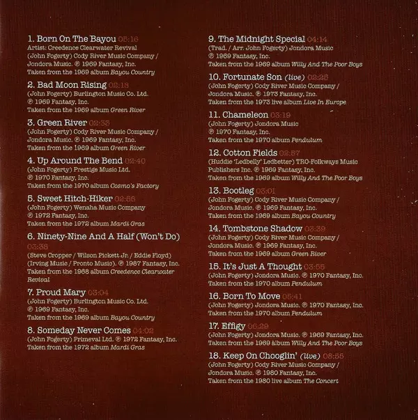 Tato kolekce největších hitů za příznivou cenu je nyní k dispozici také v Německu. Včetně všech hitů jako "Proud Mary", "Up Around The Bend" a hitu č. 1 "Bad Moon Rising".