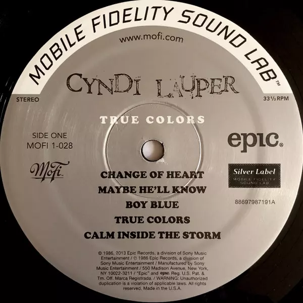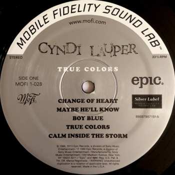 Cyndi Lauper: True Colors verze na vinylu LP v standardní edici. Toto konkrétní vydání vyšlo v Evropě ve vydavatelství Music On Vinyl dne 5. února 2021.