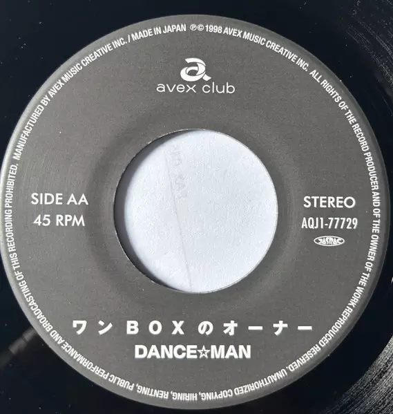 Dance☆Man: 接吻のテーマ / ワンBoxのオーナー verze na vinylu SP v 45 RPM edici. Toto konkrétní vydání vyšlo v Japonsku ve vydavatelství Avex Club dne 5. září 2025. Album lze řadit do žánru Funk / Soul.