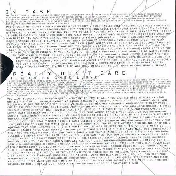 | 20 | Really Don't Care (Live) | 3:32 min | |