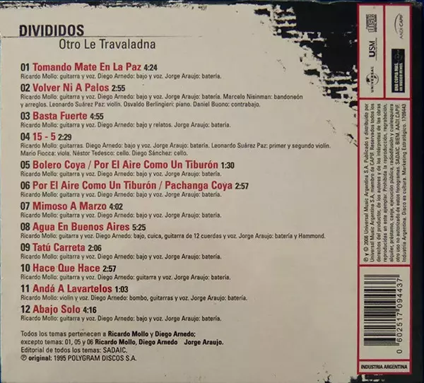 Divididos: Otro Le Travaladna verze na CD v remasterované edici. Toto konkrétní vydání vyšlo v Argentina ve vydavatelství Universal dne 21. července 1995. Album zasahuje do žánrů Rock, Folk, World, & Country, Latinská hudba, Alternativní rock, Tango a Chacarera.
