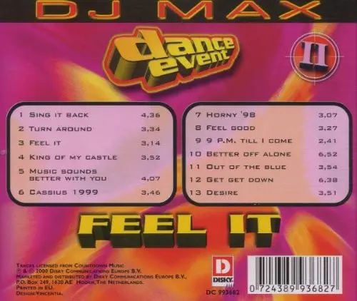DJ Max: Dance Event II - Feel It verze na CD v standardní edici. Toto konkrétní vydání vyšlo v Nizozemsku ve vydavatelství Disky dne 29. května 2000. Album zasahuje do žánrů Elektronická hudba, House, Euro House a Trance.