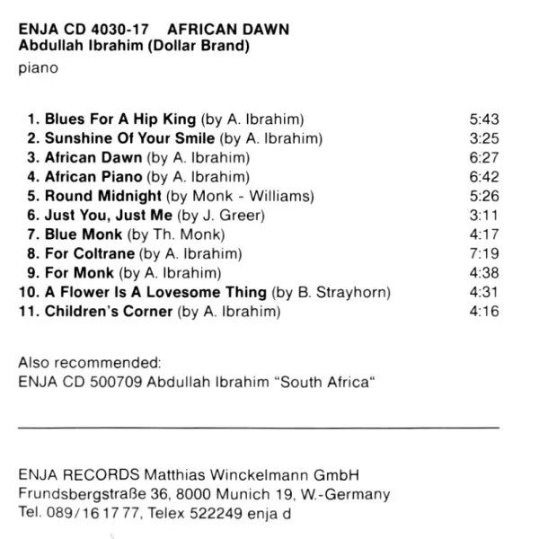 | Interpret | Dollar Brand | Abdullah Ibrahim |