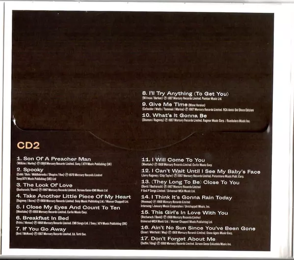 Dusty Springfield: Essential verze na 3CD v standardní edici. Toto konkrétní vydání vyšlo v Velké Británii ve vydavatelství UMC dne 30. září 2022. Album zasahuje do žánrů Pop, Funk / Soul a Vokál.